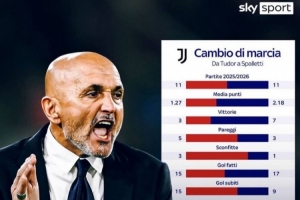 體育資訊12月22日訊 意大利天空體育曬出海報,對比了斯帕萊蒂和圖多爾的數據。
