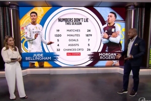 里奧·科克說:說實話,這兩人都是頂級球員。從數據上看,確實非常相近。當然,不同之處在于人們會說貝林厄姆效力的是皇家馬德里這樣的一家頂級豪門,而摩根·羅杰斯是在阿斯頓維拉證明自己。