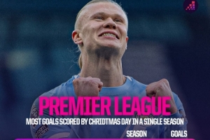 英超單賽季圣誕節(jié)前歷史射手榜: