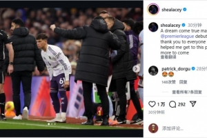 萊西寫道:“夢想成真,在曼聯完成了我的英超首秀。感謝所有幫助我走到這一步的人,希望未來能有更多出場機會。”