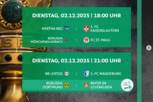 體育資訊11月6日訊 德國杯1/8決賽各場開球時(shí)間公布,12月3日4點(diǎn)勒沃庫森vs多特蒙德,4日3點(diǎn)45柏林聯(lián)合vs拜仁。