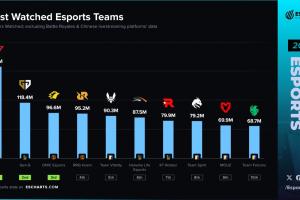 體育資訊12月23日訊?近日外媒統計2025年度戰隊收視率排名(不包含大陸地區數據),具體如下: