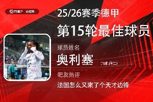 第15輪評選結果出爐,拜仁前鋒奧利塞打入一球,助球隊4-0大勝海登海姆,拜仁15輪不敗年度收官。奧利塞獲得42.4%吧友的支持,當選【體育資訊X小紅書德甲第15輪最佳球員】!