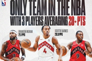體育資訊11月6日訊 NBA Canada報道,猛龍隊是聯盟目前唯一一支有三位球員場均得分超過20分的球隊。