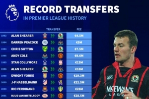 1992年 阿蘭-希勒:450萬歐(南安普頓→布萊克本)