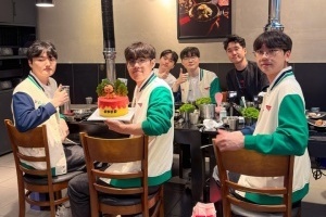 體育資訊12月23日訊 Oner與T1續約至2028賽季,T1隨后曬出一張五名首發選手聚餐給Oner過生日的照片??