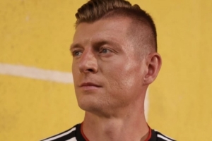 克羅斯為德國隊世界杯版阿迪達斯戰袍宣傳預熱,并打趣:別擔心啦,我不會再(在賽場上)穿這件球衣了,雖然似乎看起來這球衣簡直像是在懇求我穿上它。不過話說回來,短褲也很不錯。