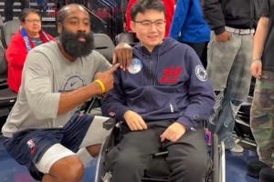 之后,哈登還曾邀請約翰·郝到76人主場看比賽。在隨后的采訪中,哈登的發(fā)言更讓人動容:“約翰·郝是我的幸運符,我們一直保持聯(lián)系,我覺得我有責任在他生命中給予一點光明。”