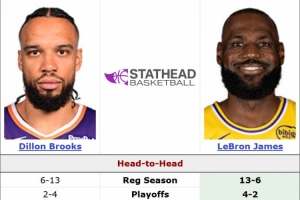 據(jù)統(tǒng)計(jì),這是詹姆斯和狄龍生涯第20次交手,詹姆斯13勝7負(fù),狄龍7勝13負(fù);季后賽詹姆斯4勝2負(fù)。
