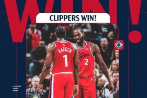 賽后快船發布贏球海報,哈登和萊昂納德登上封面,值得一提的是,萊昂納德居然露出了笑容,哈登則是背影入鏡。