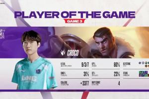 體育資訊12月24日訊?Croco杰斯打出9/3/7戰績,斬獲LNG對戰OMG第三局MVP,今日兩連MVP。