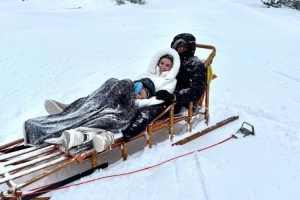 皇馬球員迎來圣誕假期,盧寧一家三口前往安道爾度假,盧寧社媒曬出雪地度假的照片。