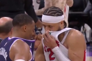 秀操作!布倫森連續(xù)兩次上下步進(jìn)球&再中三分 個人獨得8分收比賽