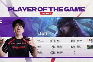 體育資訊12月24日訊 德杯小組賽第二階段JDG首局擊敗BLG,GALA憑借厄斐琉斯的亮眼表現斬獲首局MVP!