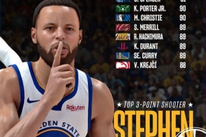 體育資訊12月24日訊 今日NBA 2K官方曬出了最新聯盟三分能力值前十球員,具體如下: