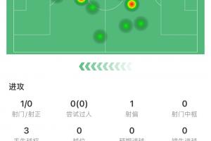 阿蘇埃53分鐘1次射門0射正,11次觸球5次傳球,3次丟失球權(quán)。1次解圍、1次成功搶斷,1次地面對(duì)抗成功。