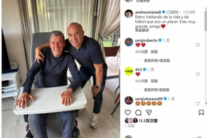 伊涅斯塔社媒曬出與溫蘇埃的合照,配文:“暢談生活與足球的時光總是如此美妙,你真的很了不起,朋友。”