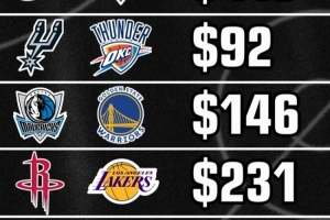 體育資訊12月25日訊 今日美媒Buckets統計了明天5場圣誕大戰的最低票價,具體如下: