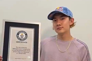 蘇翊鳴更新社媒,感謝吉尼斯認證,蘇翊鳴寫道:感謝吉尼斯世界紀錄的再次認證,希望自己在未來繼續努力,帶領中國單板滑雪創造與打破更多的世界紀錄!