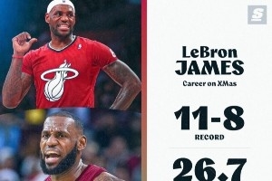 詹姆斯、杜蘭特和庫里都將在圣誕夜出戰,他們三人生涯圣誕大戰的戰績和數據如下: