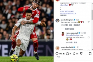 貝林厄姆留言調(diào)侃:“抱得太緊了,兄弟????”