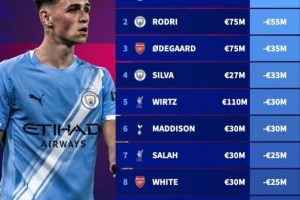 體育資訊12月25日訊 德國(guó)轉(zhuǎn)會(huì)市場(chǎng)公布了新一期的球員身價(jià)情況,進(jìn)入2025年后,英超多名球星身價(jià)出現(xiàn)大幅下跌。德國(guó)轉(zhuǎn)會(huì)市場(chǎng)盤(pán)點(diǎn)了2025年英超球員身價(jià)下跌榜,曼城兩將福登和羅德里分別下跌6000萬(wàn)歐元和5500萬(wàn)歐元位居前二。