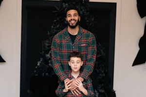 體育資訊12月26日訊 塔圖姆更新社媒,曬出了父子兩人穿同款家居服在圣誕樹下的合照。
