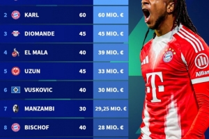 體育資訊12月26日訊 德國轉會市場盤點了2025年德甲身價漲幅榜,拜仁兩將奧利塞、倫納特·卡爾分別上漲6500萬歐和6000萬歐位居前二。