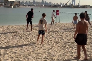 巴薩邊鋒亞馬爾正在迪拜度假,這位18歲的球員現身迪拜海灘,加入一場沙灘足球賽,與孩子們一起踢球。