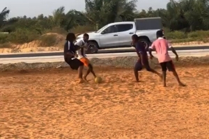 體育資訊12月26日訊 巴薩邊衛孔德在非洲貝寧度假,與孩子們一起踢球。