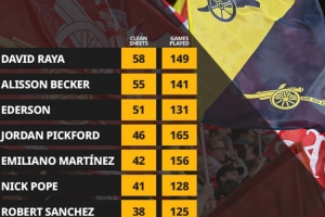 體育資訊12月26日訊 據Opta統計,拉亞已出戰149場英超比賽,接近達成150場里程碑。拉亞英超首秀以來聯賽零封58場,英超門將同期最多。