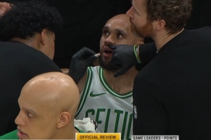 GIF-內姆哈德上籃一肘打到懷特下巴,后者嘴巴出血
