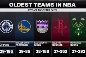 轉播方曬出一組數據,本賽季聯盟最老的5支球隊平均年齡如下: