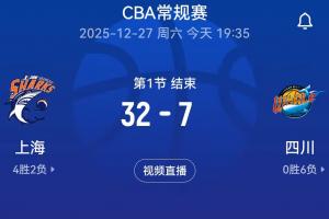 體育資訊12月27日訊 CBA常規賽第7輪,四川首節7-32落后上海。