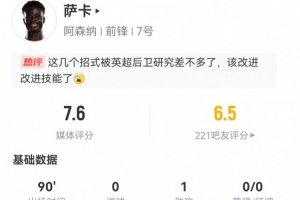 體育資訊12月28日訊 阿森納在本輪英超對陣布萊頓,薩卡本場數據如下: