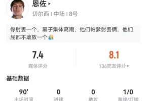 體育資訊12月28日訊 切爾西在本輪英超1-2被維拉逆轉(zhuǎn),恩佐本場數(shù)據(jù)如下: