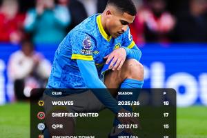 據統計,狼隊開季18輪不勝,創造了英超歷史的最差開局,超越謝菲聯在2020/21賽季的17輪不勝。