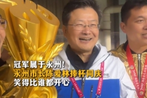 體育資訊12月28日訊 2025“湘超”決賽,永州隊1-0擊敗常德隊,奪得冠軍。據“風芒新聞”報道,賽后永州市長陳愛林捧杯。
