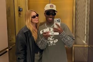 近日,網上流傳出兩張照片,圖中維尼修斯與女友弗吉尼亞面帶笑容手持驗孕棒,暗示懷孕。但據小編查證,此圖片為AI生成。