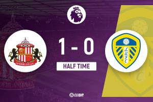 體育資訊12月28日訊 北京時間12月28日22:00,英超聯賽第18輪桑德蘭迎戰利茲聯的比賽在光明球場進行,上半場扎卡助攻阿迪格拉抽射首開記錄,休姆門線解圍,布羅比頭球中楣,半場結束,桑德蘭1-0利茲聯。