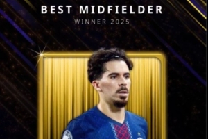 體育資訊12月29日訊 2025環足獎頒獎典禮正在進行中,25歲的維蒂尼亞當選為年度最佳中場。