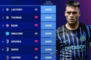 1、勞塔羅(國際米蘭),8500萬歐元