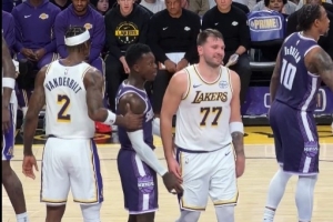 GIF-施羅德對東契奇說,我要把你的??打出來。東契奇笑笑回應