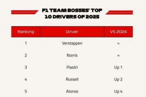 體育資訊12月29日訊 F1官方公布了本賽季的年度車隊領隊評分,其中,維斯塔潘排名第一,諾里斯第二,皮亞斯特里第三。