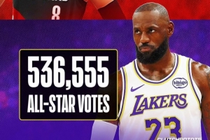 美媒ClutchPoints發文表示:“二十年來,NBA始終遵循著一條不成文的規則,除了死亡和納稅,勒布朗·詹姆斯穩坐全明星票王寶座。十多年來首次,他在西部票選中排名第九。”