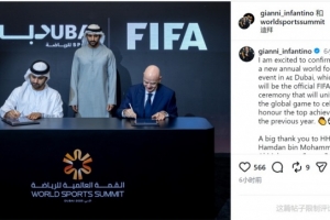 因凡蒂諾社媒曬出簽約照片,并寫道:”我很高興確認,一項全新的年度世界足球頒獎盛典將于2026年起在迪拜正式啟動,屆時它將成為國際足聯官方頒獎典禮,匯聚全球足壇精英共同慶祝并表彰過去一年的卓越成就。