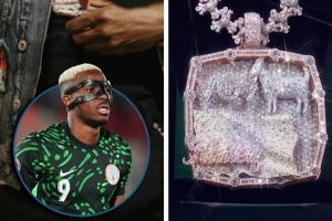 據(jù)介紹,這條項鏈委托珠寶商Benny The Jeweler打造,由14000顆寶石鑲嵌而成,共986克拉,項鏈總重近1.5公斤。項鏈正面鑲嵌著一只山羊(goat),飾有奧斯梅恩的名字首字母和球衣號碼“VO9”,下方是綠色黃金打造的尼日利亞國旗,并疊印女兒海莉的名字。項鏈背面刻有設計師的簽名,該品牌在社媒展示了這款項鏈,配上“MVP”字樣縮寫,項鏈上面還點綴了微型足球圖案。