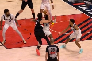 小伙超積極啊!沃爾斯籃板被恩比德倒地?fù)屜?立馬反搶并造成犯規(guī)