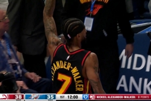 體育資訊12月30日訊 在今天老鷹129-140不敵雷霆的比賽中,亞歷山大-沃克命中了一記神奇的半場左手壓哨三分。
