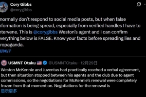體育資訊12月31日訊 不久前,麥肯尼的經紀人科里·吉布斯在社交媒體發文,辟謠了轉會傳聞。
